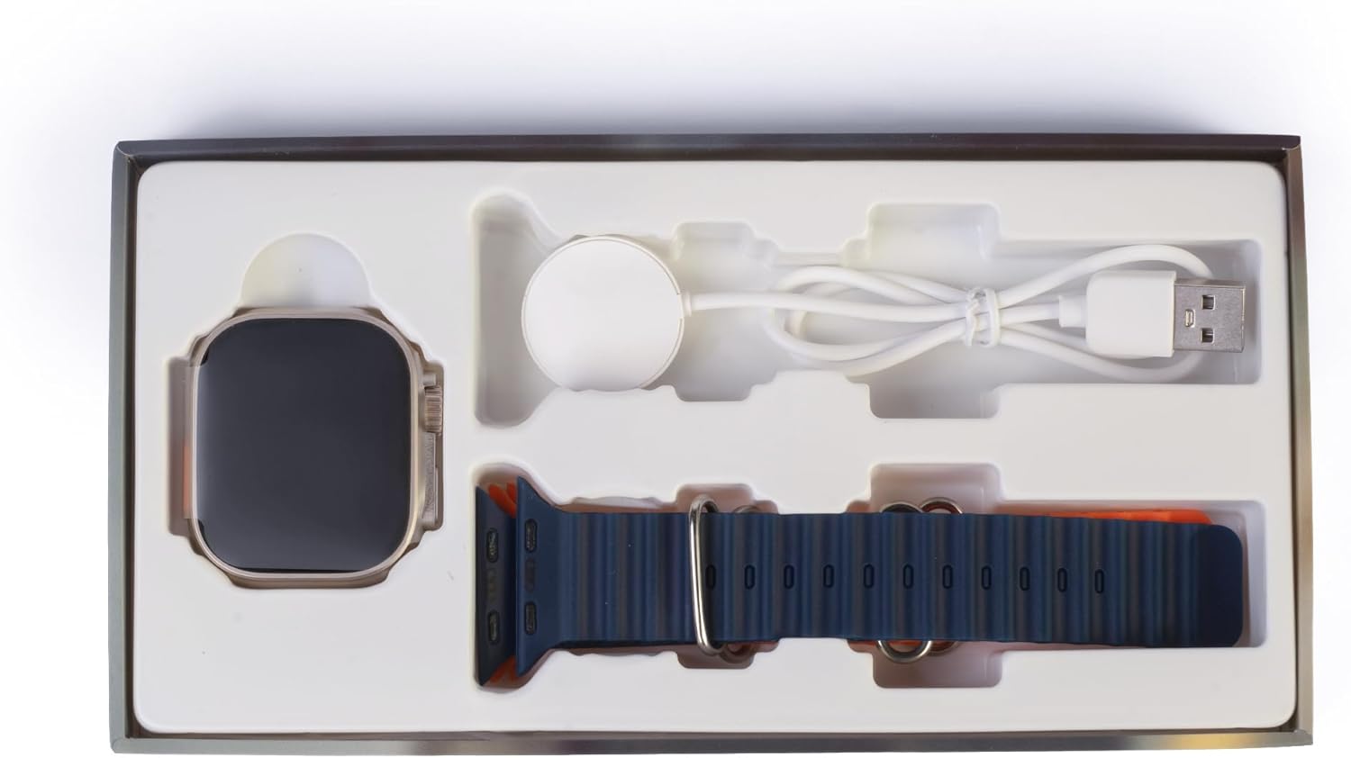 ConnectME SP8 ULTRA MAX 49mm Smart Watch with smart split screen display. It features scan code connection, 3D dynamic dial, Application market, Voice calls, Band language switch with Blood glucose monitoring, View health data of relatives and friends. Also features voice assistant, Motion track view, Password lock screen, Short video control. Raise your hand to brighten the screen. Hourly point measurement, Bracelet memory: 8M. Bluetooth version: 5.3. Battery capacity; 180mAH. Display: Distance, Play music, time setting, Sport mode, Breath training, power saving mode, meteorological.