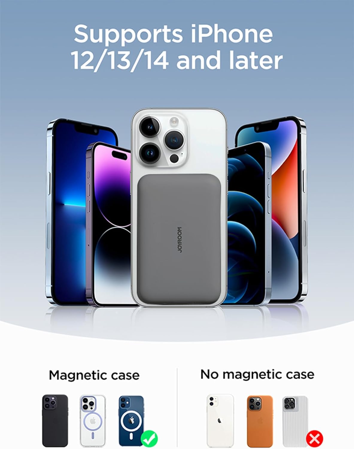 جوي رووم يوفر الباور بانك الأسود المتوافق مع ماج سيف راحة وتعدد استخدامات لا مثيل لها. ميزته المميزة هي القدرة على شحن الأجهزة لاسلكيًا مع وظيفة الكشف التلقائي والشحن السريع، مما يدعم سرعات مختلفة تتراوح من 5 واط إلى 15 واط. للشحن السلكي، يدعم منفذ النوع سي كلاً من الإدخال والإخراج، مما يتيح الشحن السريع ثنائي الاتجاه حتى 20 واط. مصمم بمغناطيس فائق القوة 10 نيوتن، يتم تثبيته بأمان بالأجهزة المتوافقة مع ماج سيف. على الرغم من حجمه الصغير، يدعم الباور بانك الشحن المتزامن لما يصل إلى ثلاثة أجهزة، وذلك بفضل قدرات الوضع المزدوج اللاسلكي والسلكي. تحتوي العبوة على حقيبة سفر وكابل شحن قصير من النوع ايه إلى يو اس بي نوع سي، مما يجعلها الرفيق المثالي للسفر أو الاستخدام اليومي. يأتي باللون الأسود.