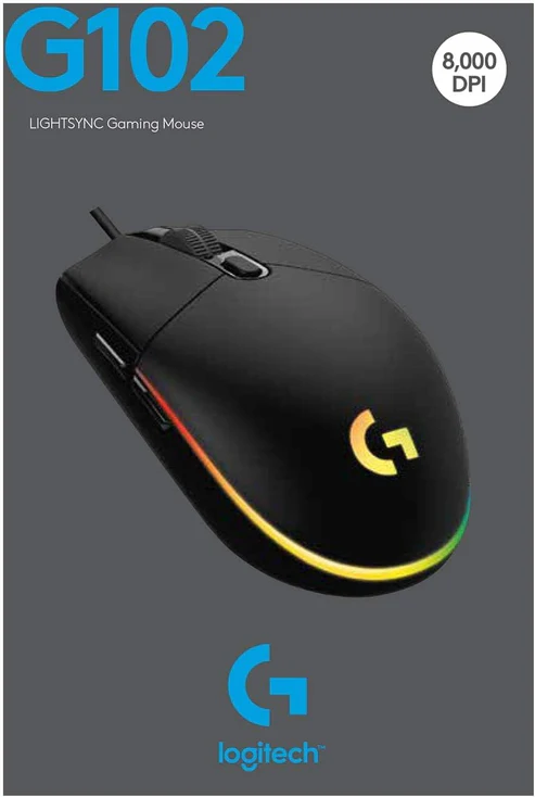 Logitech G102 Light Sync Gaming Mouse with Customizable RGB Lighting, 6 Programmable Buttons Light Weight (Black)