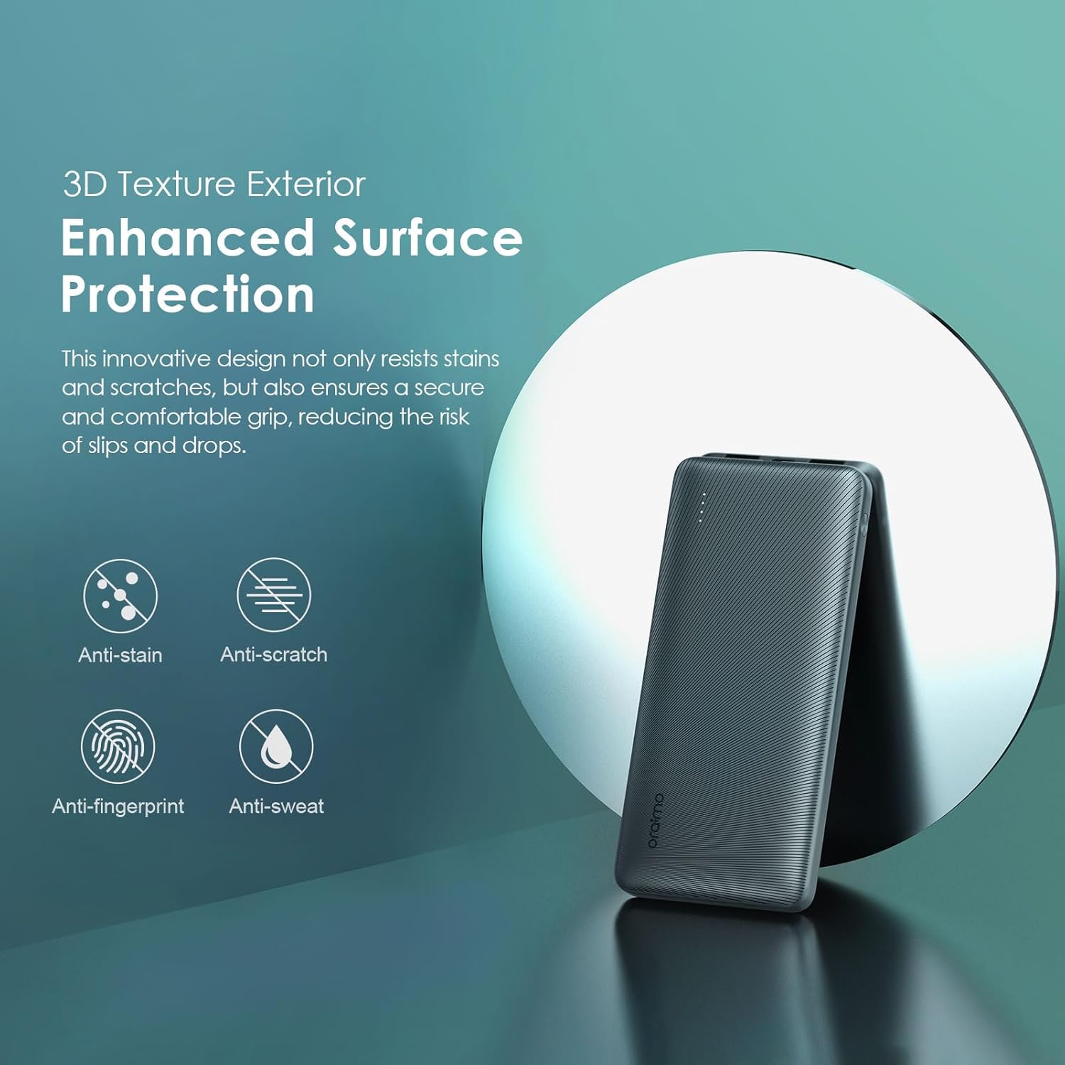 Oraimo Toast 15 Flash 10000mAh Power Bank with 15W Type C Fast Charging,USB&Type C Triple Output,Power Delivery, Type C &Micro Input,Multi-Layer Protection &3D Texture Exterior