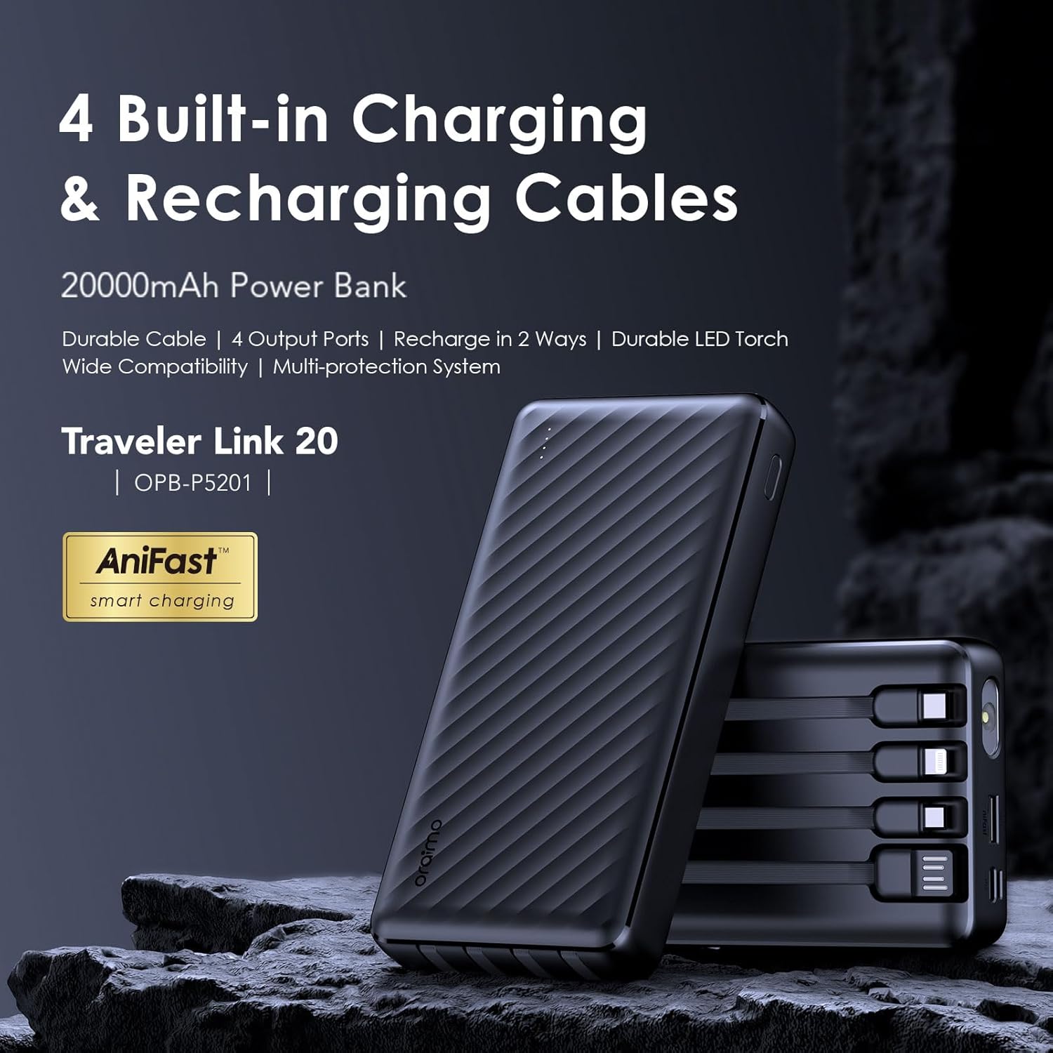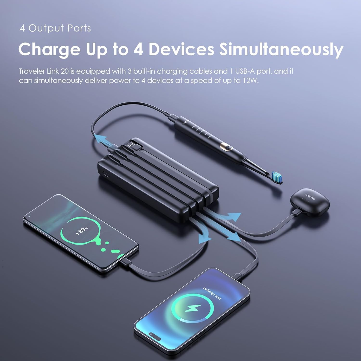 - ⚡【Wide Compatibility,Delivers Rapid Charging for Various Devices】Equipped with oraimo's exclusive chip, AniFast power bank can intelligently identify the fast-charging protocol of your device to deliver the speediest possible charge.it can not only charge for all smartphones but also for most accessories,like TWS earphone, smart watch, electric toothbrush, bluetooth speaker and more.