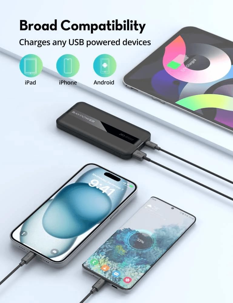 RAVPower RP-PB1236 PD 20W 2 Port 10000mAh Power Bank - Black|18 Months Warranty