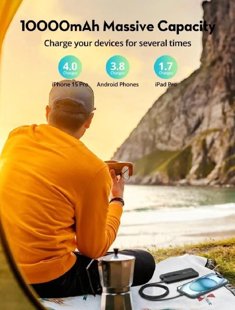 - سعة عالية 10000 مللي امبير في الساعة - مصدر طاقة موثوق للموبايلات الذكية والتابلت والاكسسوارات طوال اليوم.